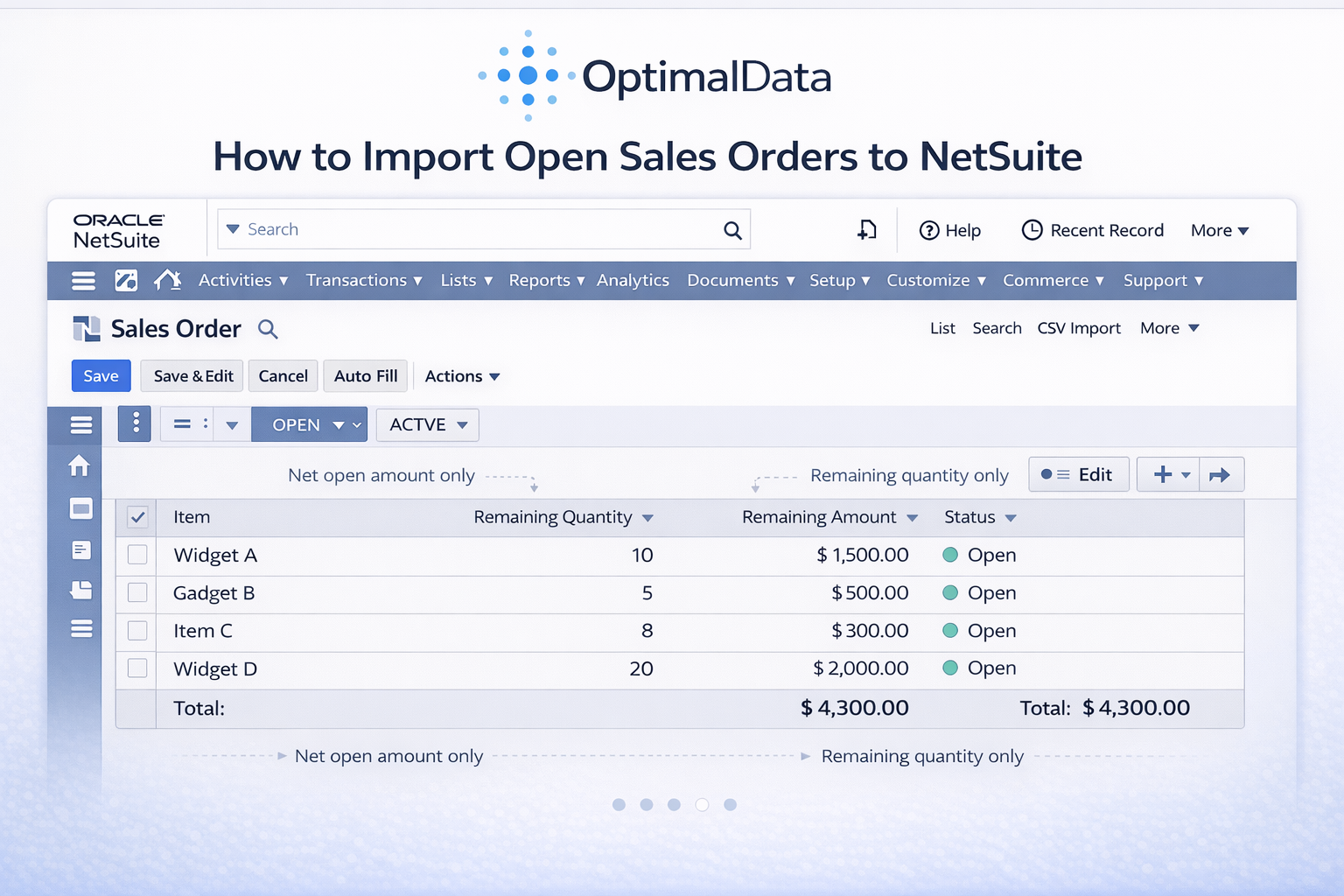OptimalData specializes in helping clients accurately and seamlessly transition detailed transaction data from their legacy system into NetSuite. We focus on accurately importing your data into NetSuite, so your implementation stays on schedule. Our expertise brings you peace of mind and helps you and your implementation partner save time and reduce data migration risk.